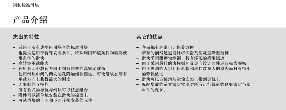 我们的滚柱导轨系统使您可以用zui小的力移动zui重的负载,同时确保高性能机床和机器人用户需要的设计刚性和精度。多种精度的滚柱导轨系统可供选择。  (博世力士乐滚柱导轨) 优势 - 4个主要承载方向上*的负载能力